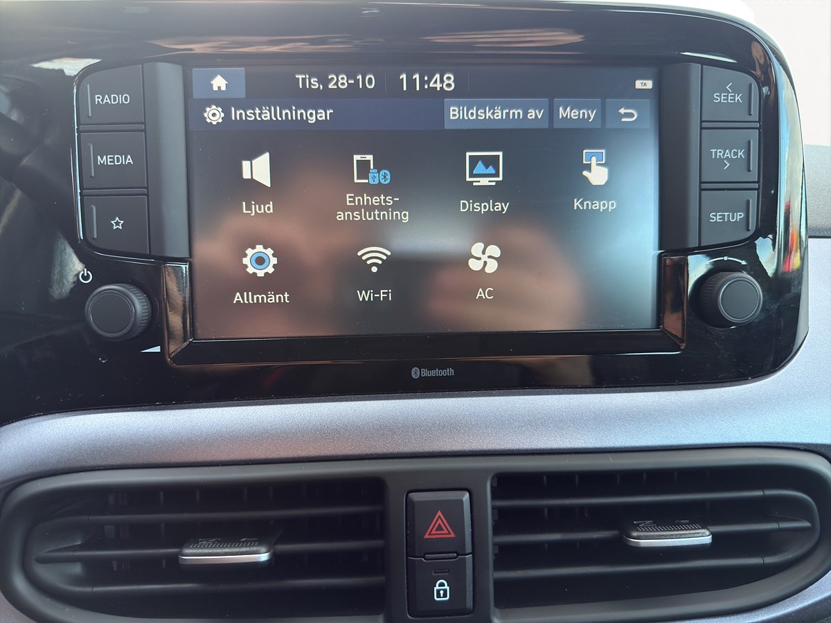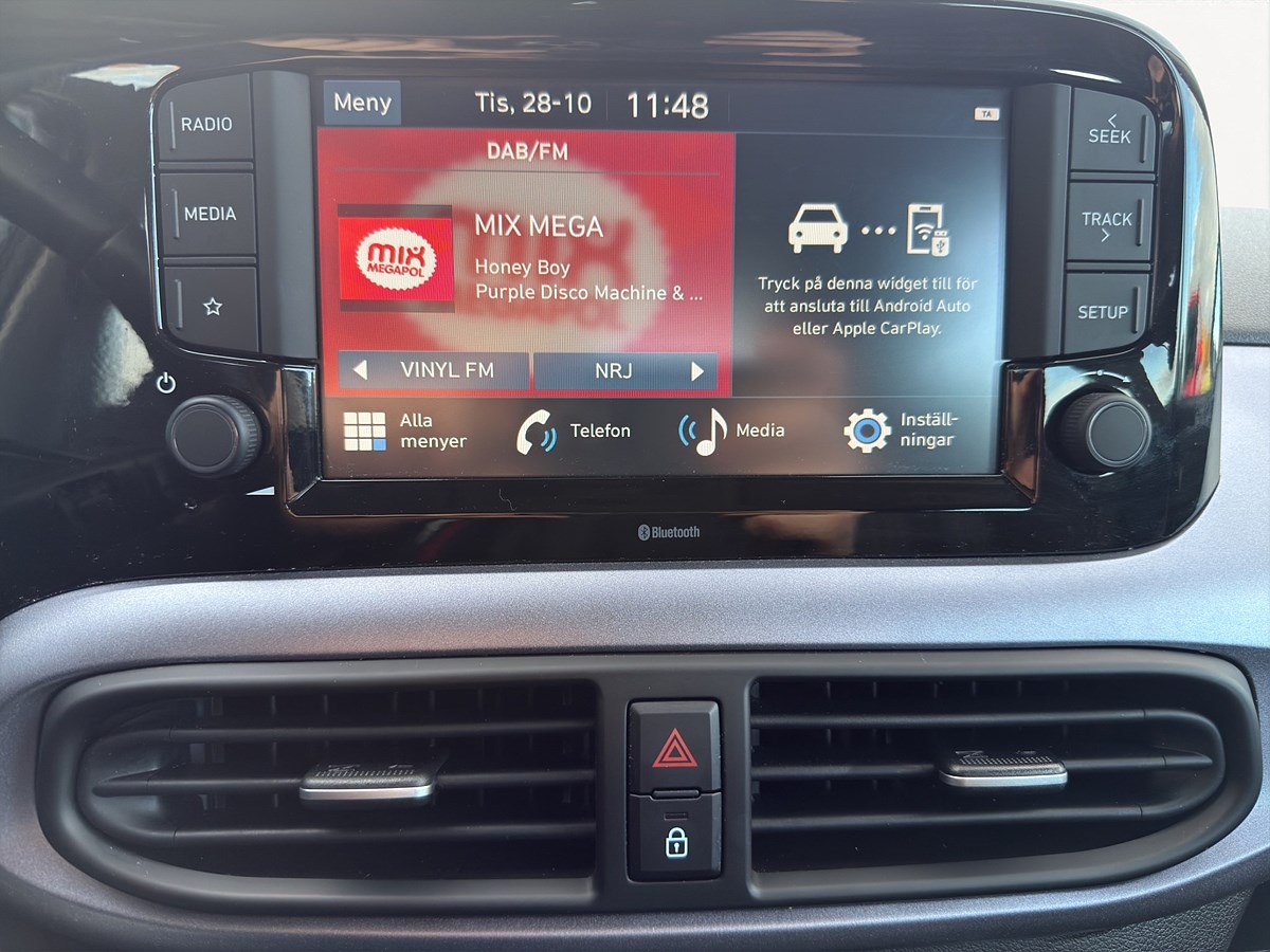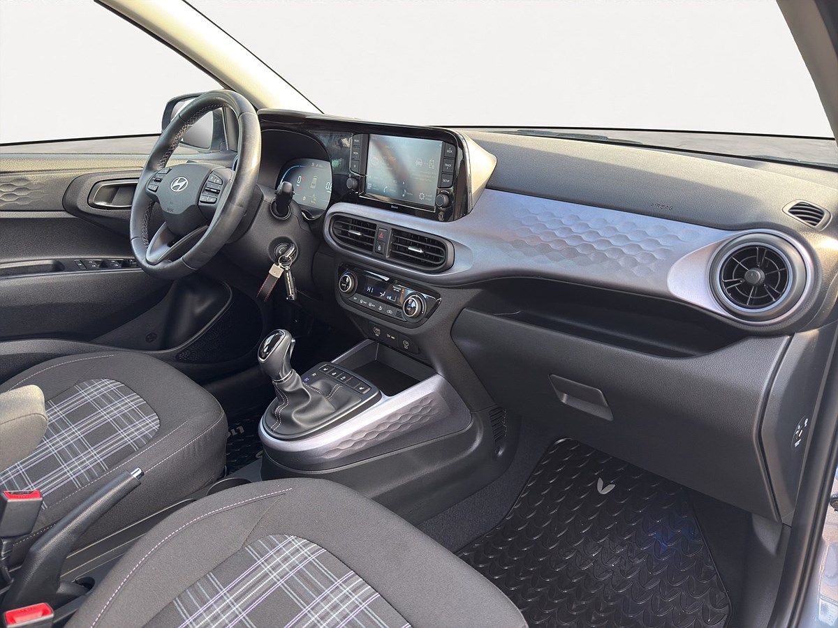 Interiören är förvånansvärt rymlig med god komfort, moderna material och välplanerad förvaring. Hyundai i10 bjuder dessutom på hög säkerhet med flera assistanssystem och låg bränsleförbrukning – perfekt för både vardagspendling och längre turer.