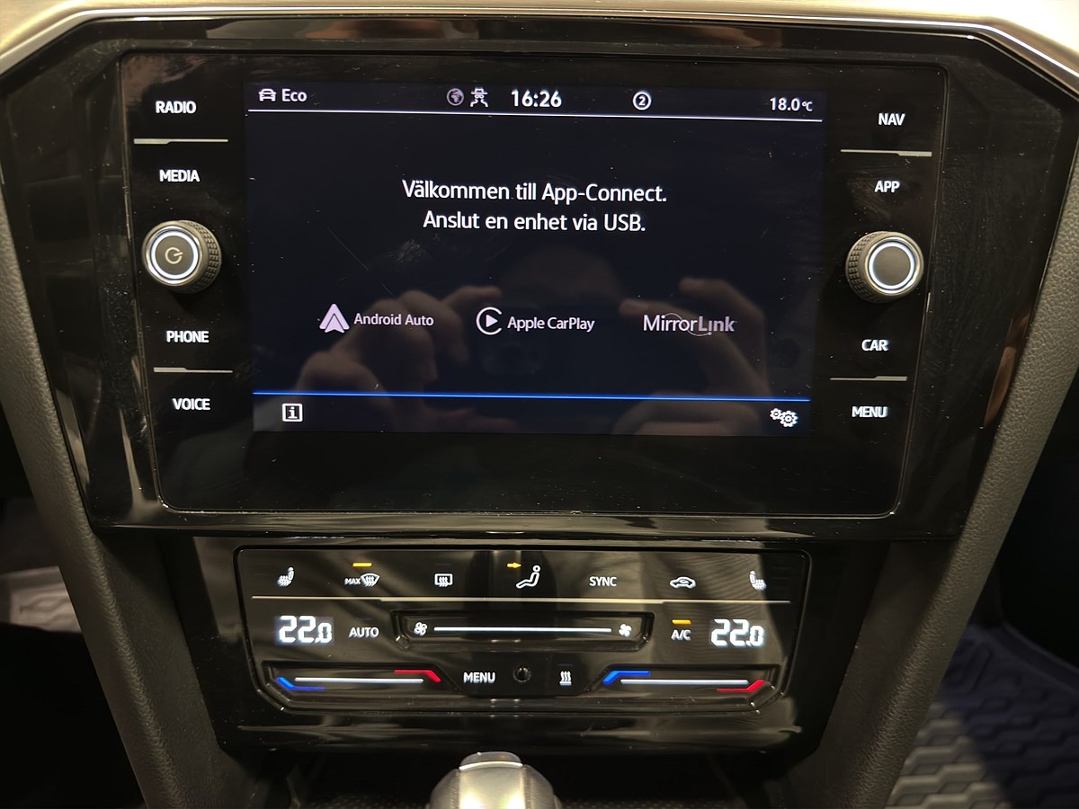 R-Line (exteriör & interiör) DSG automatisk växellåda (sekventiell) 4Motion fyrhjulsdrift Adaptiv farthållare LED-strålkastare Backkamera Parkeringssensorer Sportstolar Klimatanläggning Dragkrok