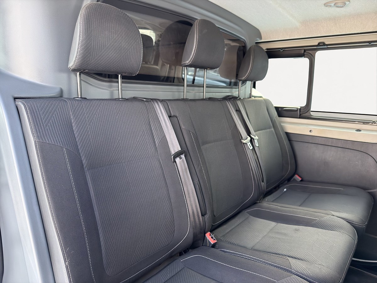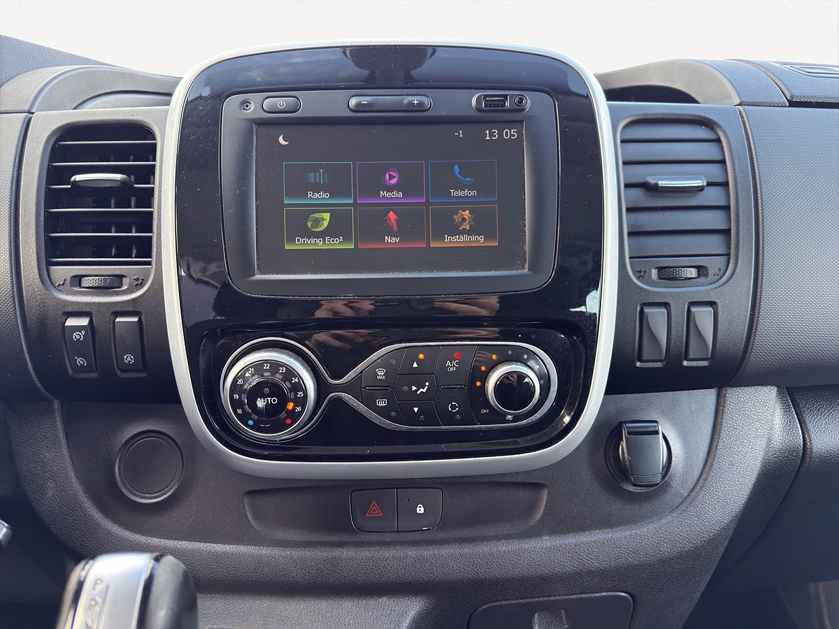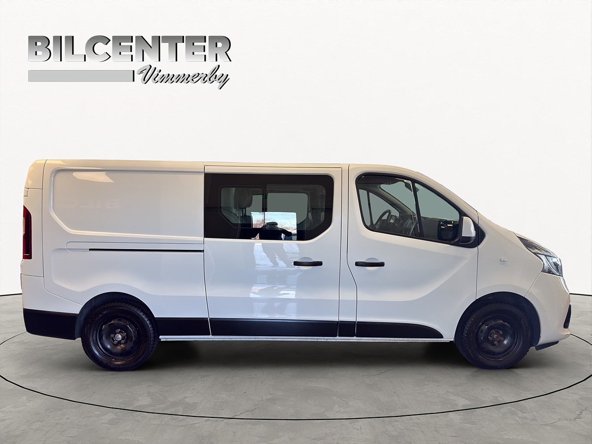 Här har du en mycket fin och väl omhändertagen Renault Trafic som passar perfekt för företagaren eller hantverkaren som vill ha både lastutrymme och personbilskomfort. Den är 5 sitsig vilket gör att du enkelt får med hela arbetslaget samtidigt som du fortfarande har ett generöst skåputrymme bak.